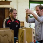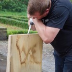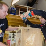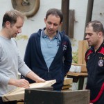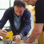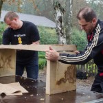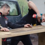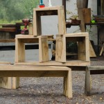 Vier Hocker und zwei Bänke für das Außengelände eines Kindergartens. Gefertigt von aus Iserlohner Eichenholz. Gebaut von den Vätern in einem Teamworkshop.
