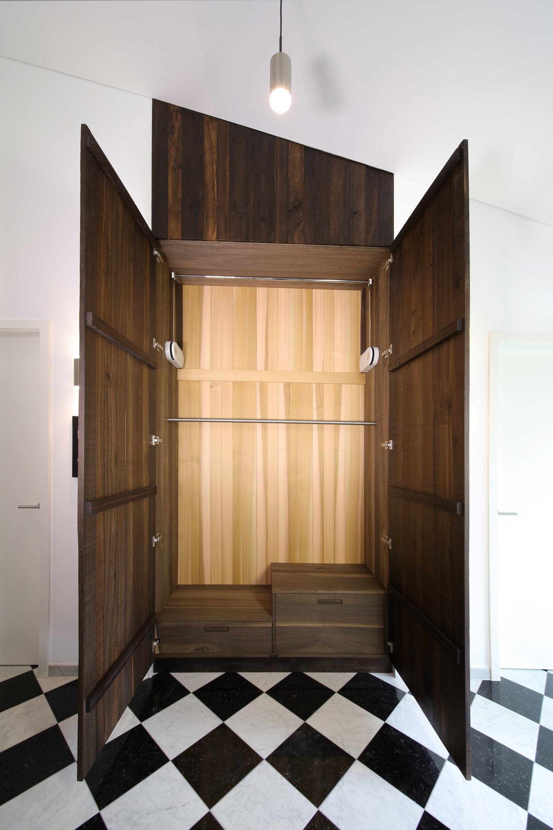 Objekteigenes Altholz im betriebseigenen Sägewerk zerlegt und in verschiedenen Dimensionen in die neugestaltete Praxis rückverbaut. Fotos: Felix Agel / HDAV Multimedia Hagen